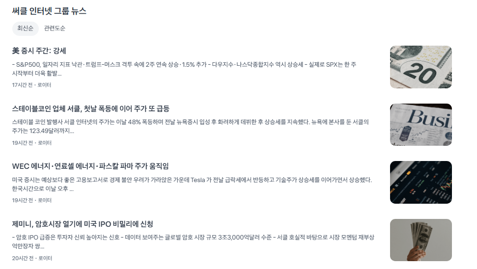 - 결론: 서클은 '암호화폐 인프라'라는 명확한 투자 테마와 강력한 기관들의 지지를 업고 화려하게 데뷔했습니다. 현재의 높은 주가는 미래 성장성에 대한 기대감이 선반영된 결과입니다. 단기적으로는 높은 변동성에 유의해야 하지만, 장기적으로 디지털 금융 인프라의 핵심 기업으로 성장할 잠재력은 충분해 보입니다.