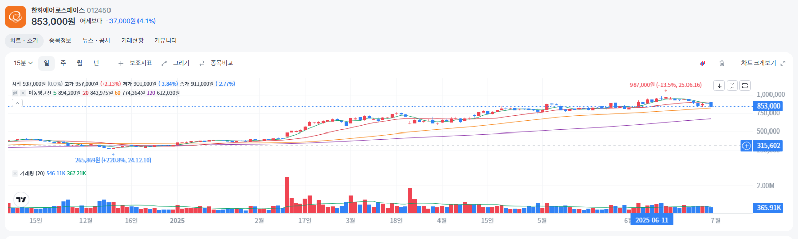 한화에어로스페이스는 2025년 1분기 역대 최대 실적과 KF-21 엔진 전량 공급 등으로 탄탄한 성장 기반을 구축했습니다. 글로벌 방산 수출 확대, ESG 경영 강화, 한화그룹 방산 3사 시너지 등 중장기 성장성이 부각되고 있습니다. 주가는 최근 외국인 매수세와 정책 기대감으로 강세를 보이며, 향후 변동성 구간에서는 분할 매수/매도 전략과 리스크 관리가 필요합니다.
