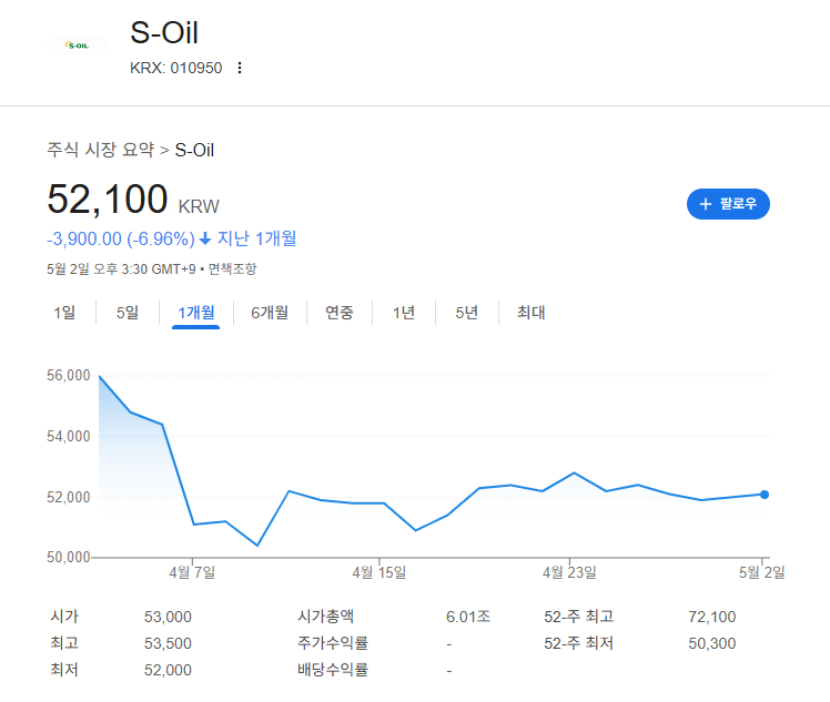 S-Oil 미공개 강세 한덕수 사외이사 이력.