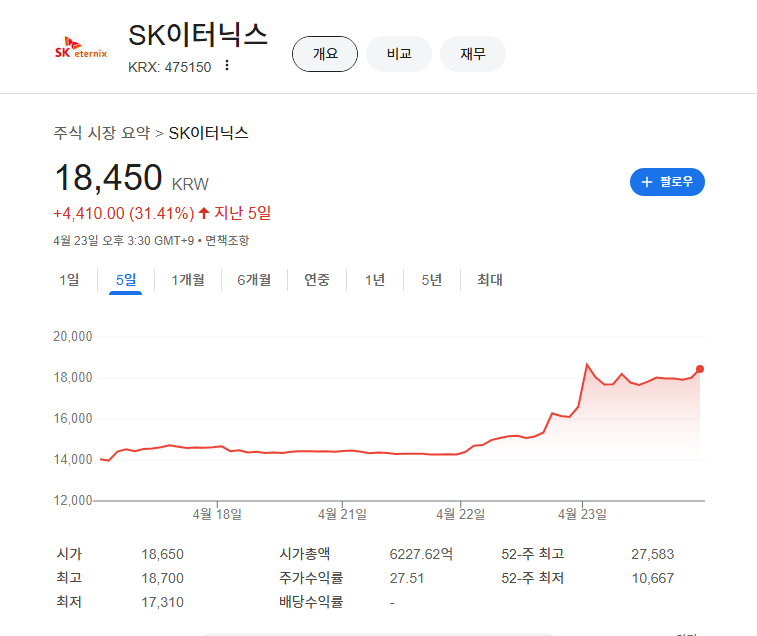 SK이터닉스 주가 급등 배경