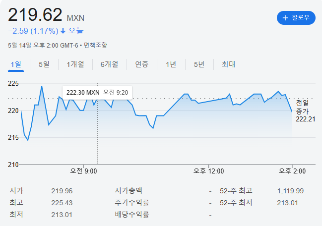 | 2025년 5월 15일 오후 5:38 KST | 11.20 | -1.15% (5월 14일 대비) | 지속적인 반도체 반등 |