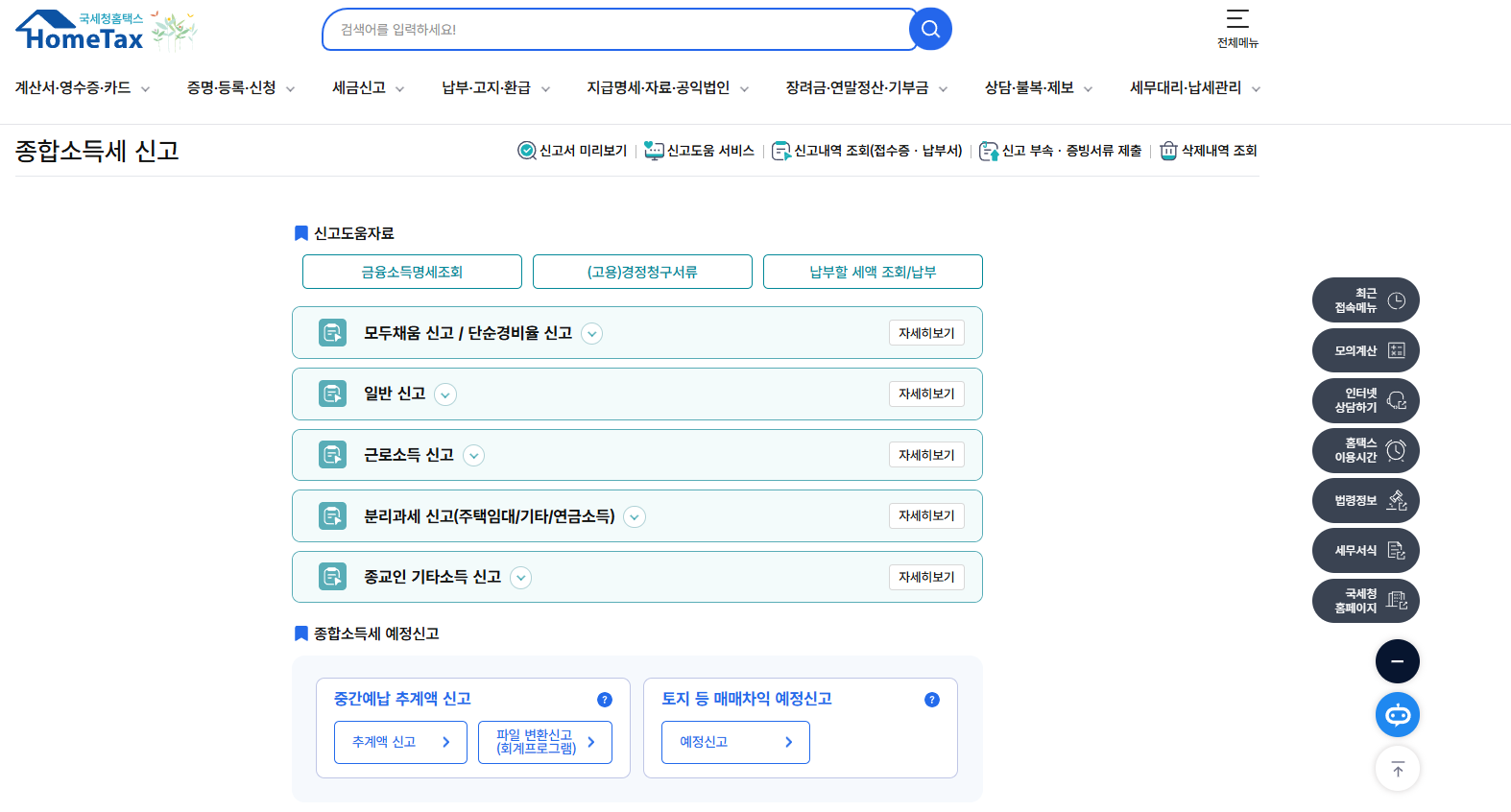 - 지방소득세 신고: 신고 완료 후 위택스 연계로 지방소득세 신고.